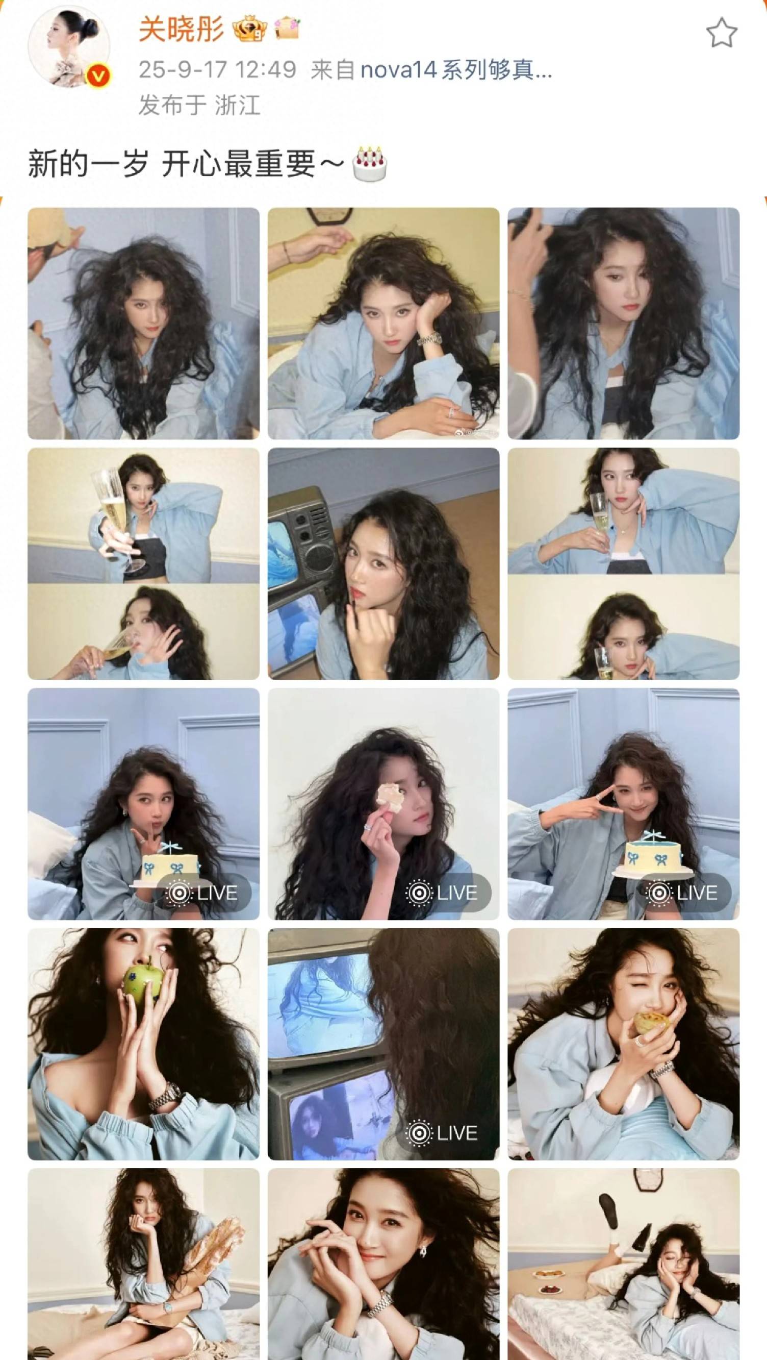 晓彤的诞辰这日是合,晒出了一组诞辰照片下昼她正在社交平台,15张一共,“新的一岁配文写道:,最紧要高兴!了大师的属意”这很速惹起。