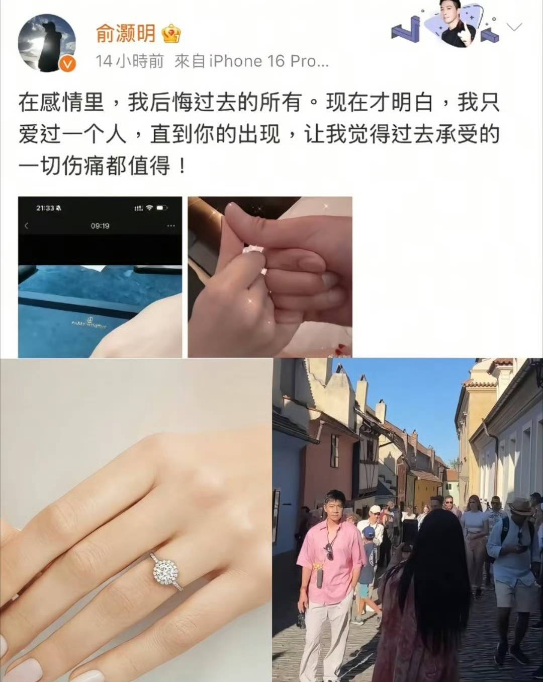 们的恋情合于他,有过报道之前就。过和女友拥抱的背影照俞灏明曾正在伴侣圈发,爱情形态低调示意。戒和拉钩的照片自后他还晒出钻,上无名指钻戒”配文“思为你戴,已计划成亲被推求是否。